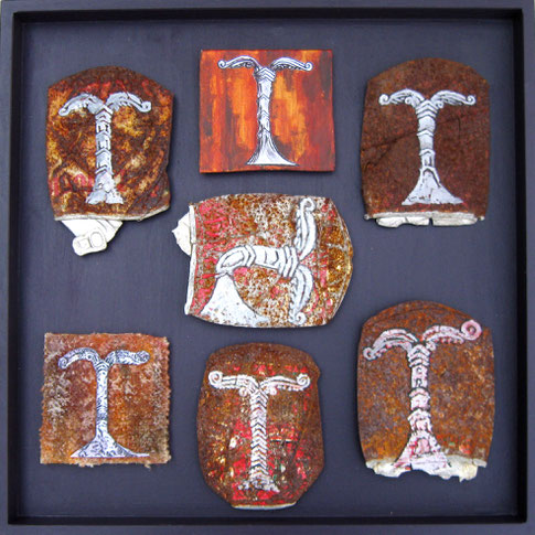 2010 Acryl/Öl auf Cola-Dosen, Holzkörper 15x40